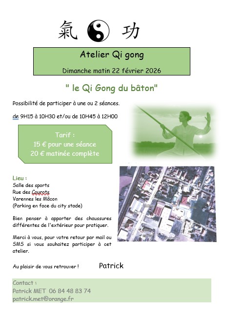 Certains cours pourront être co-animés ou animés par Marie-Ch. VERCHERE qui démarre un cycle de formation Qi Gong – Ecole TAO Thierry ALIBERT.